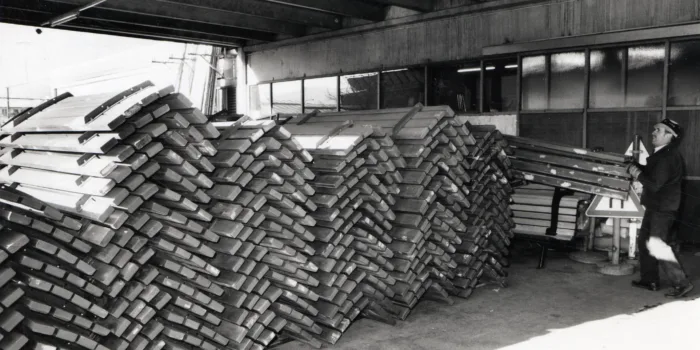 Die Wiesengasse war eine solche, und das Heu wurde noch „gestanggert“. Rechts im Bild erkennt man auf halber Höhe das Gasthaus Bretterkeller, darüber die Gebäude des Sillkraftwerks. Was ebenfalls noch fehlt, ist die „ebenerdig“ verlaufende Südtangente.
