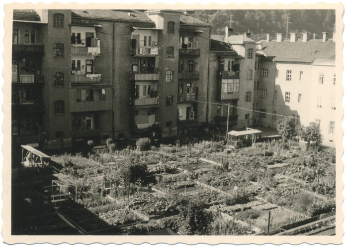 Im Hof der "Eisenbahnerblöcke", einer kürzlich abgerissenen Häuserzeile am Ende der Andreas-Hofer-Straße, wurde in genau…