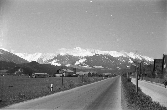Das Foto stammt aus einem Fotoalbum vom Innsbrucker Hobbyfotografen Mayer. Das einstöckige, langgezogene Fachwerkhaus hat…