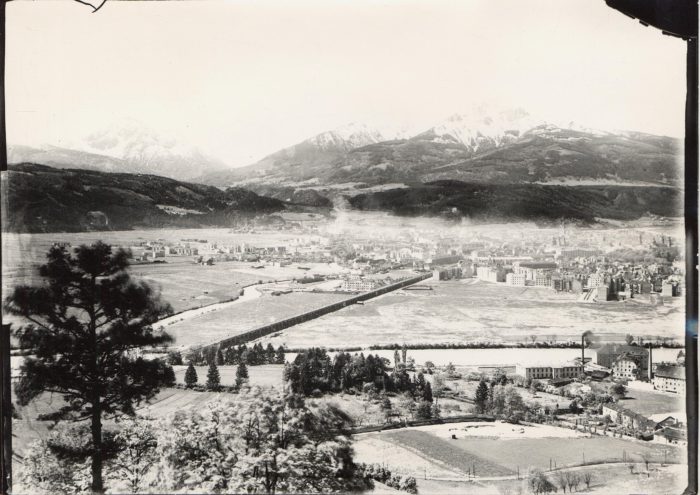 Ein Blick von Mühlau auf den Saggen und die Reichenau. Das dominante Bauwerk auf diesem…
