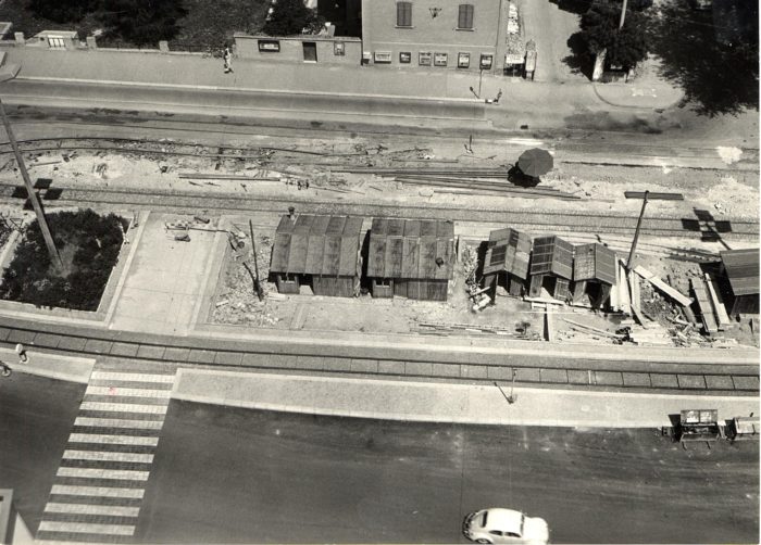 Umtost von Straßen und Straßenbahnschienen stehen hier ein paar verlassene kleine Häuschen. Eremiten? Nein, Bauarbeiter.…