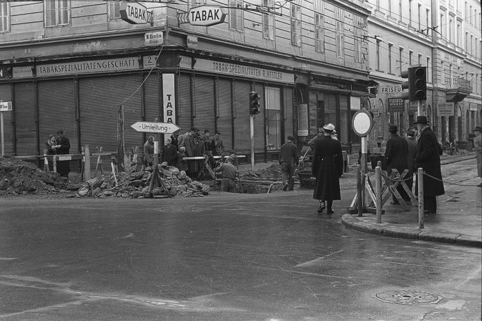 Der Marktgraben an der Ecke zur Maria-Theresien-Straße mit der dort noch immer befindlichen Tabaktrafik Nessler,…