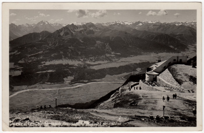 Wir sehen hier ein Foto der Hafelekar Bergstation, Mitte der 1930er Jahre. Lässt man hier…