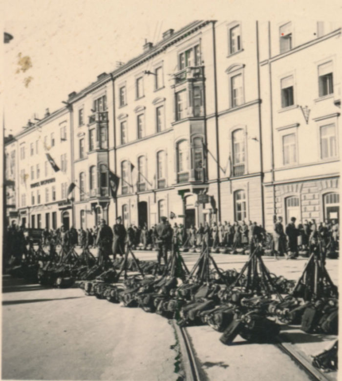 Streng geordnet stehen die Gewehre zu Pyramiden gestellt bereit. Daneben liegen säuberlich drapiert die dazugehörenden…