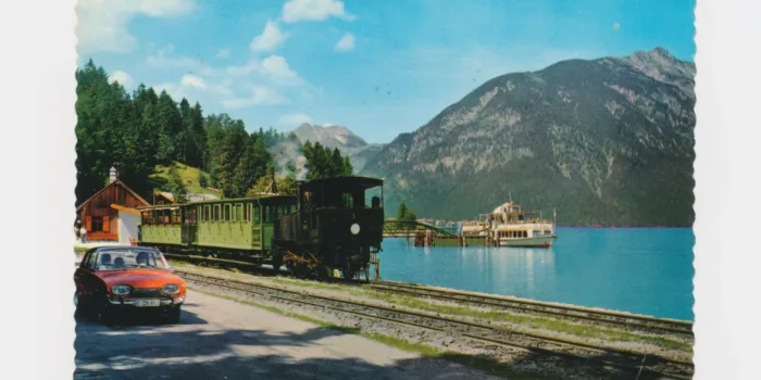 Dann habe ich den bis dahin nicht wirklich registrierten unbewaldeten Abhang im linken unteren Eck gesehen. Eigentlich müsste der Fotograf doch auf so einer steilen Wiese gestanden haben, oder? Sollte diese Überlegung richtig sein, käme dafür der Hügel in Frage, der auf dem Bild mit der Talstation (1. Link meines vorhergehenden Kommentars) hinter dem großen Haus am Hohen Weg sichtbar ist. Aber ob er von dort wirklich geradewegs auf die Eisenbahnlinie gesehen hätte, dafür nicht zu wenig weit rechts und zu niedrig gestanden wäre? Dann käme als Alternative nur der nächste unbewaldete Hang in Frage, zwar etwas höher, aber schon einiges weiter westlich gelegen. https://innsbruck-erinnert.at/muehlauer-villenpanorama-i/
