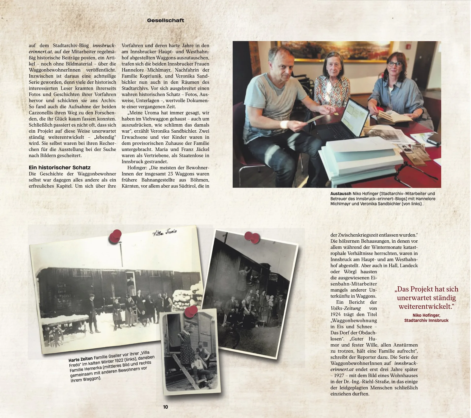PS: Heute ist ein ausführlicher Artikel im TT Magazin zu unseren Recherchen rund um diese außerwöhnliche Innsbrucker Wohnsituation vor 100 Jahren erschienen. Viele von Ihnen waren ja live dabei, als die persönlichen Geschichten und schönen Bilder eines nach dem anderen ihren Weg ins Stadtarchiv/Stadtmuseum fanden.