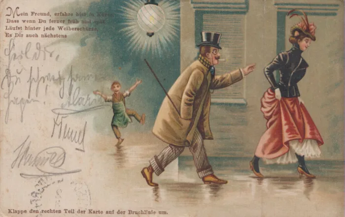 Bei dieser am 2. März 1901 gelaufenen Postkarte handelt es sich um eine sogenannte "Humorpostkarte"…