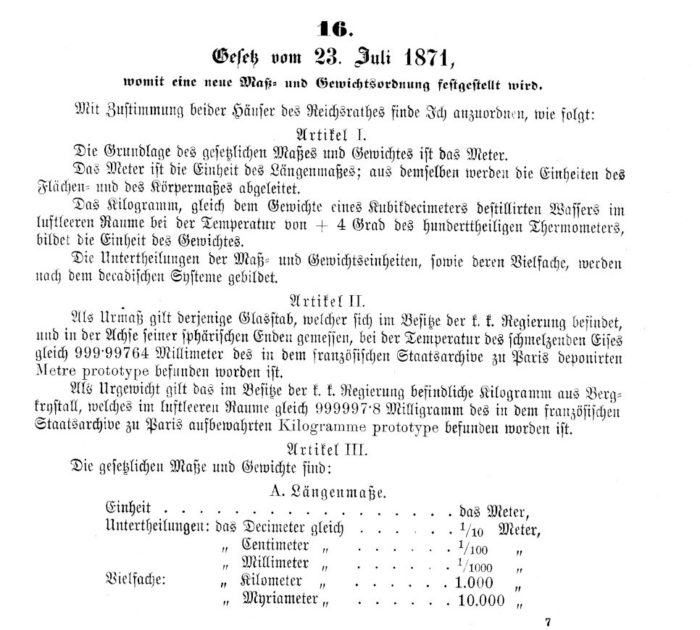 Heute vor 150 Jahren wurde mit dem Gesetz vom 23. Juli 1871 eine neue Maß-…
