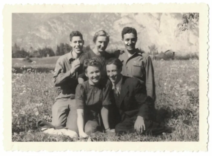 Skepsis, Neugier und Annäherung: Einheimische Frauen in einem Tiroler Dorf, Mai 1945, aufgenommen von einem…