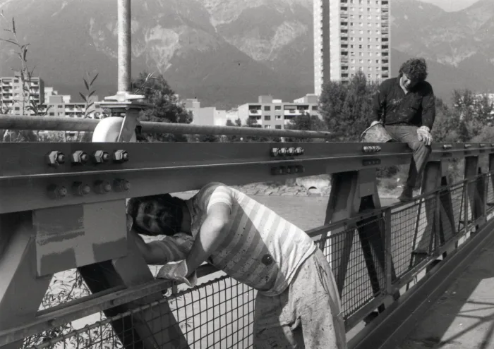 Wir, zwei rechtschaffene Anstreicher, kriegen in der Früh vom Chef den Auftrag, die blöde Brücke…