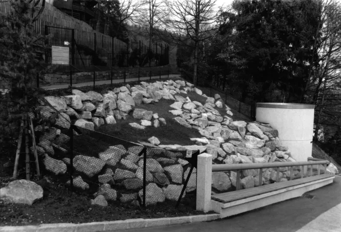 … sehen wir eine der zahlreichen Quellfassungen in Innsbruck. Ein solider Zaun rundherum und innen…