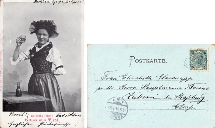 Diese lustige Geburtstagskarte wurde in Pertisau am 1. September 1904 nach Zabern bei Straßburg verschickt.…