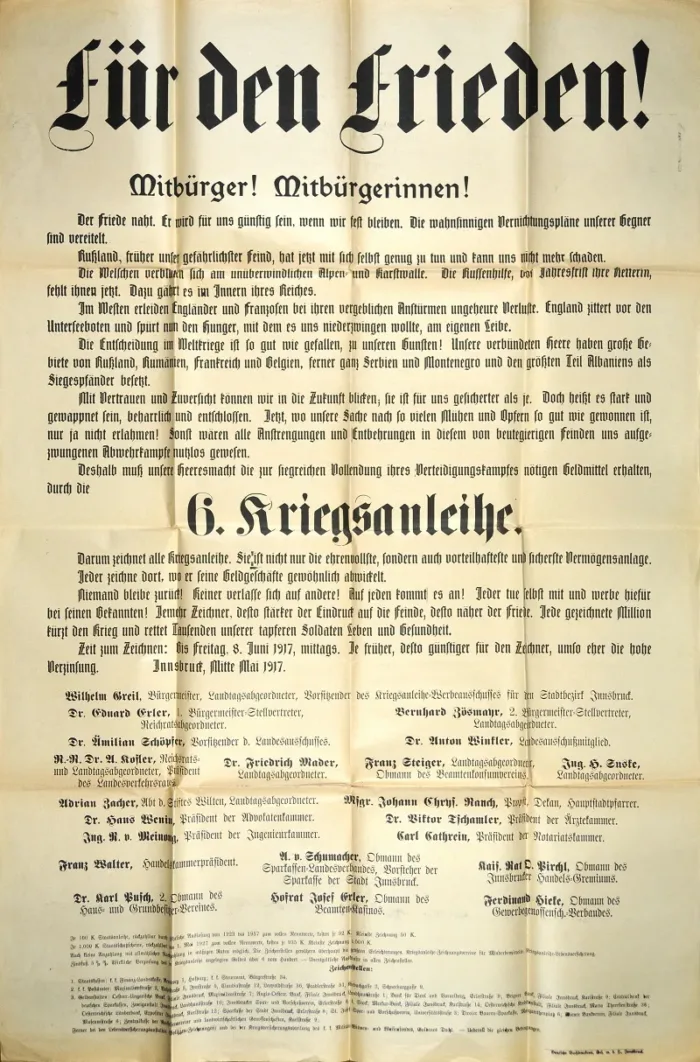 Als dieses Plakat in Innsbruck im Mai 1917 angeschlagen wurde, hatten die Bürger und Bürgerinnen,…