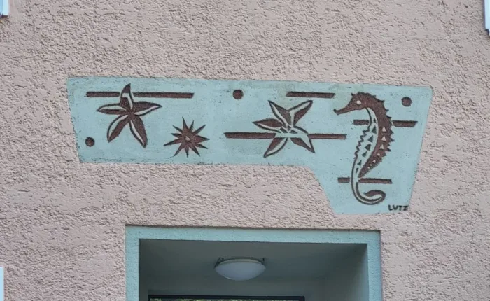 herrscht das ganze Jahr bei diesem Wohnhaus. Gestaltet wurde der Wandschmuck mit Seesternen und Seepferdchen…