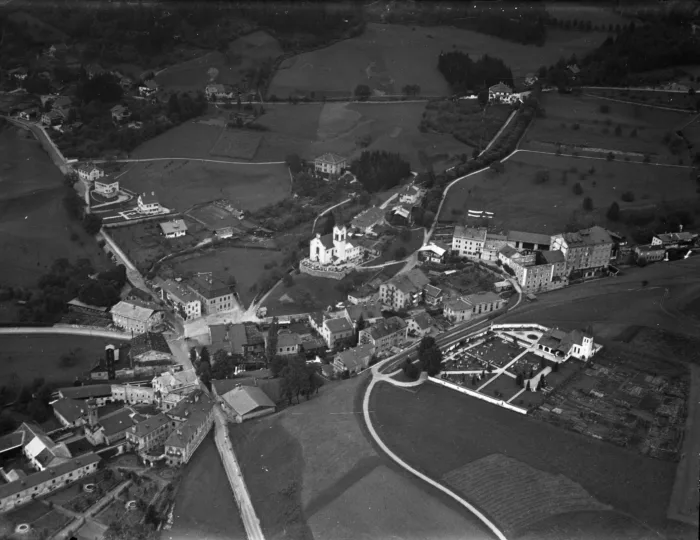 Das heutige Motiv lässt sich unschwer erkennen: Häuser und Kirche im Vordergrund gehören zu Igls,…