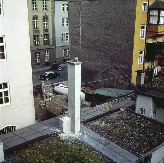 Ein weiteres Foto von Nickel Fritz zeigt den Blick über die Dächer einer Wohnanlage auf…