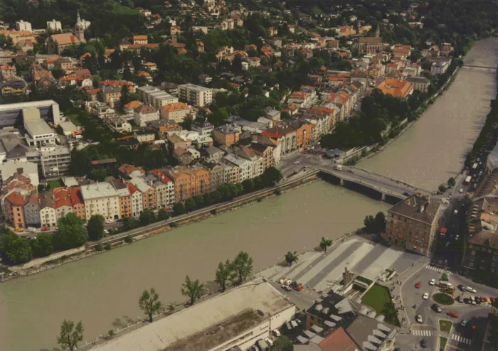 Nächster Standort unserer Schrägluftbilder ist heute der Dorfkern von Mühlau des Jahres 1991. Die geläufigsten…