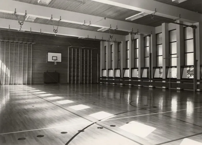 ... wird hoffentlich dieses Rätsel gelöst werden. Zu sehen ist der Turnsaal einer städtischen Schule…