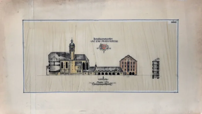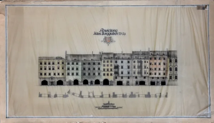 Unsere Fassadenabwicklung geht weiter mit dem vorletzten Plan dieser Reihe. Zu sehen ist die Häuserzeile…