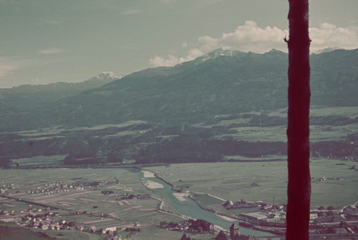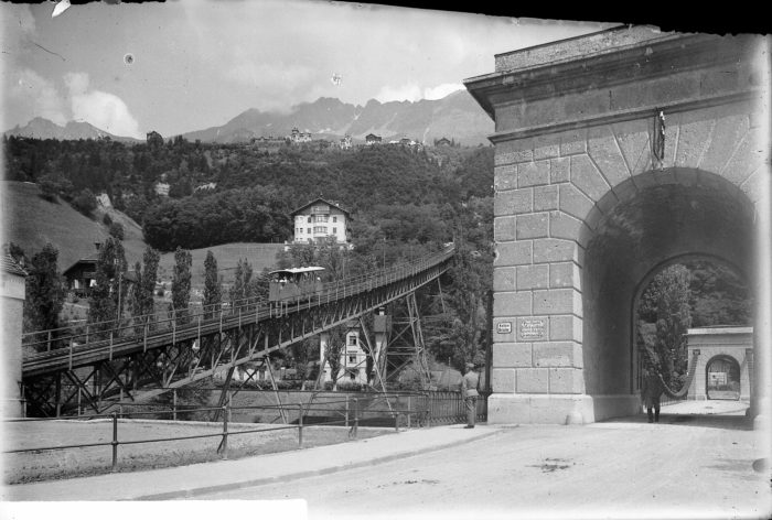 Der Fotograf richtet seine Kamera auf den Sill- und Südbahnzwickel mit der noch nicht zerbombten…