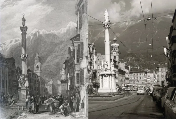 Wenn man den Stahlstich auf der linken Seite betrachtet denkt man sich unwillkürlich, wie anders…
