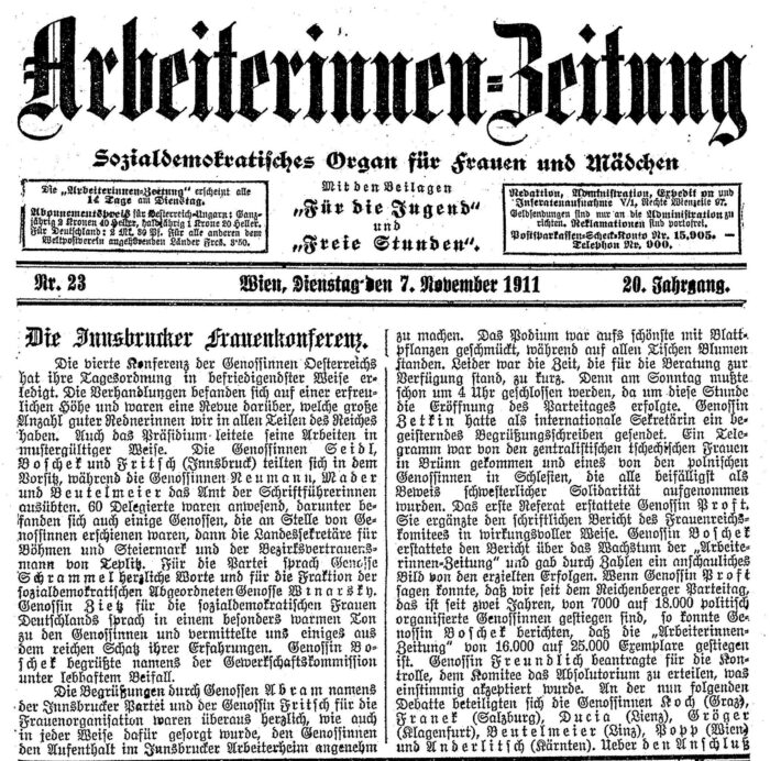 Im November 1911 tagte die vierte Frauenkonferenz der Sozialdemokratischen Arbeiterpartei Österreichs (SDAPÖ) in Innsbruck. Derartige…