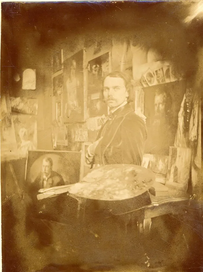 Gerüstet mit Pinsel und Palette steht er da – am Anfang seines Weges als Künstler,…