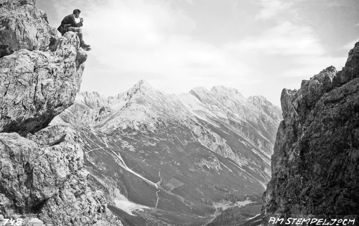 Einen wunderschönen Blick ins Halltal genießt der Herr mit Pfeife. Unterhalb seines Aussichtspunkt ist gut…