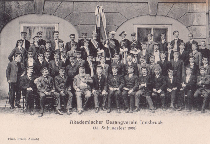 Die nicht gelaufene Korrespondenzkarte zeigt ein Gruppenfoto des Akademischen Gesangvereins Innsbruck. Das Bild entstand anlässlich…