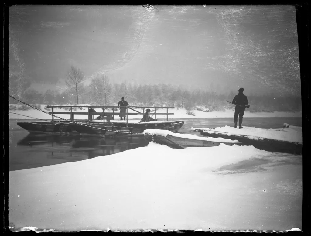 Weiters bin ich zufällig auf eine Aufnahme gestoßen, die ebenfalls aus Terfens stammen soll und eine weitere Vermutung von Frau Stepanek bekräftigen würde, nämlich ein wunderschönes Bild der „Inn-Überfuhr“ bei Terfens/Weer im winterlichen Gewand.