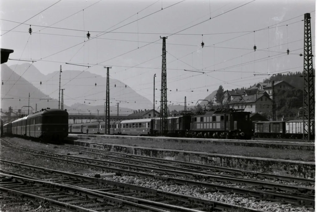 In der Sammlung Kreutz findet sich dieses schöne Glasnegativ des Bahnhofs in Kufstein. Es ist leider undatiert, und es würde mich sehr interessieren, ob jemand unter unseren Leser*innen eine Idee hat, aus welcher Zeit die Aufnahme stammen könnte, denn in Kufstein tue ich mir mit der zeitlichen Einordnung etwas schwerer.