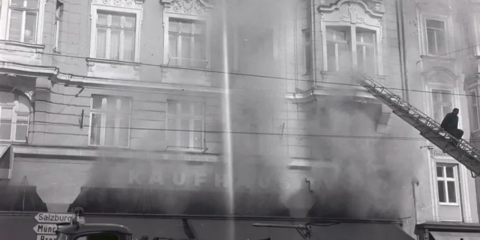 1485 wurde die erste Wasserleitung nach Innsbruck verlegt. Auf der hier zu sehenden Urkunde bewilligten Caspar Schrot und seine Frau Anna der Stadt die Führung der Leitung über ihren Grund für eine jährliche Zahlung von 5 Pfund Berner pro Jahr. Die Quelle lag unterhalb der heutigen Gramartstraße beim sog. Katzenbrunnen. Die Stadt musste auch noch an weitere Grundbesitzer denselben (oder fast denselben) Satz bezahlen, um die Leitung verlegen zu können. Sie führte über die Innbrücke, wobei zwei Seitenarme nach St. Nikolaus, bzw. Mariahilf führten. Die Hauptleitung selbst teilte sich nach der Innbrücke erneut, ein Teil führte direkt in die Altstadt, ein anderer um die damalige Stadtmauer herum in die Neustadt, die heutige Maria-Theresien-Straße. Im folgenden Jahrhundert führte man noch eine zweite Quelle, die damalige Lehmtalquelle (heute als Gamsstollenquelle bekannt) durch dieselbe Leitung, da beide Quellen nicht sonderlich ergiebig waren. Die Rohre der Leitung bestanden aus Holz – noch bis 1904!