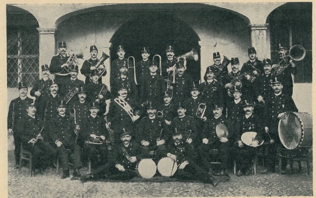 Die Kapelle im Jubiläumsjahr, die Uniformen sind gleich, die Bartmode hat sich indes gewandelt.