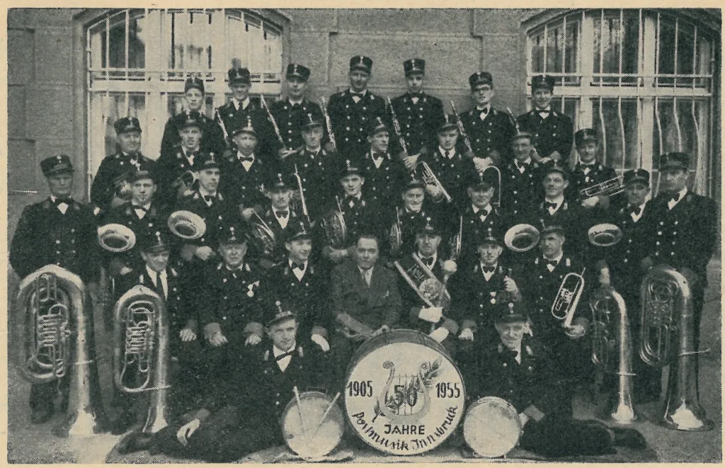 Im Jahr 1956 feierte die Postmusikkapelle Innsbruck ihr 50jähriges Bestehen mit einem großen Treffen weiterer Postmusikkapellen. Das Festprogramm sehen Sie im Titelfoto.