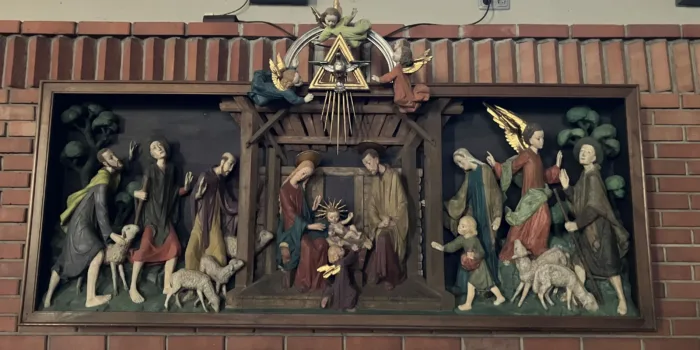 In einer „Festschrift“ der Pfarre Wilten-West, hellgrüner Einband mit Bild der neuen Pfarrkirche,