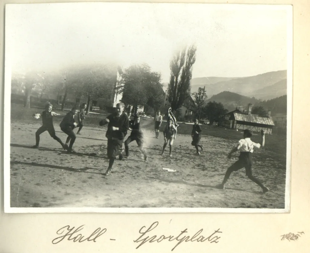 Aus dem famosen Jugendalbum des Rudolf Hemerka heute eine Rätselfrage: Was haben die Burschen der Kinderfreunde hier im Sommer 1925 in der Haller Lend gespielt? Zum Mannschaftsfoto oben gibt es noch zwei weitere Bilder, die wirklich gut gelungen sind. Wer einmal versucht hat Action-Fotos beim Sport zu schießen, weiß wie schwierig es ist einen dynamischen Moment zu erwischen.