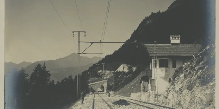 Die Errichtung der Mittelgebirgsbahn von Innsbruck-Wilten nach Lans und Igls, die am 27. Juni 1900 eröffnet wurde, hatte maßgebliche Bedeutung für den Aufstieg Igls zum international bekannten Luftkurort. Für die Gestaltung des hier abgebildeten Fahrplans aus dem Jahr 1904 wurde ein bekannter Tiroler Künstler beauftragt, nämlich Tony Grubhofer. Das Plakat misst 103 x 70,5 Zentimeter und ist sehr schön und aufwendig gestaltet. Der Künstler fertigte für den Bildhintergrund ein Aquarell mit Alpenrosen als Motiv an. Links unten ließ er genügend Platz für den Fahrplan, der übersichtlich in Tabellenform gestaltet ist. Ganz oben und auf der rechten Seite fügte er drei Abbildungen – ebenfalls Aquarelle – in unterschiedlichen Größen und Formaten ein. Das oberste Bild zeigt Igls, den Lanser See und die damals noch mit Dampf betriebene Mittelgebirgsbahn. Die zwei weiteren Bilder sind da schon ein bisschen kniffliger. Meine Fragen dazu: Welcher See ist auf dem zweiten Bild zu sehen und wo steht das Gebäude, das auf der dritten Abbildung zu sehen ist?