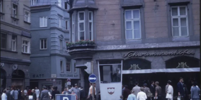 Vielleicht ist die Welt doch eine Scheibe, die oben und unten von der Nordkette begrenzt wird. Immerhin ist ja auch der Nabel der Welt – für die, die es nicht wissen, es ist natürlich Innsbruck – abgebildet. Wenn man allerdings das Weltbild etwas strenger auslegt, dann befinden wir uns zum Zeitpunkt der Aufnahme (wohl um 1920) noch im benachbarten Ausland.