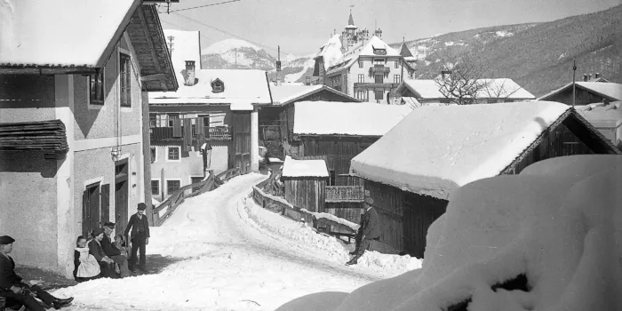 Ein ungewöhnlicher Blickwinkel auf Vill gegen das Wipptal mit der Serles im Hintergrund. Deutlich zu erkennen ist die Igler Straße und die vielen eiszeitlichen Schutthügel. Aus dem ehemals bäuerlich strukturierten Dorf ist heute eine beliebte und teure Wohnadresse der Innsbruckerinnen und Innsbrucker geworden, die es gerne grün vor der Haustüre haben.