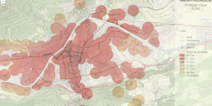 … entführt uns diese Aufnahme aus den späten 1920er-Jahren. Wir sehen einen Bus der im Oktober 1926 eröffneten Linie 1, die zwischen dem Hauptbahnhof und dem Mariahilfer Friedhof verkehrte (das Höttinger Gemeindegebiet war damals aufgrund der noch unbefestigten Straßen für den Automobilverkehr gesperrt). Die Linie wurde von der Firma Menardi mit zwei Kleinbussen vom Typ Austro Fiat 9/36 betrieben.