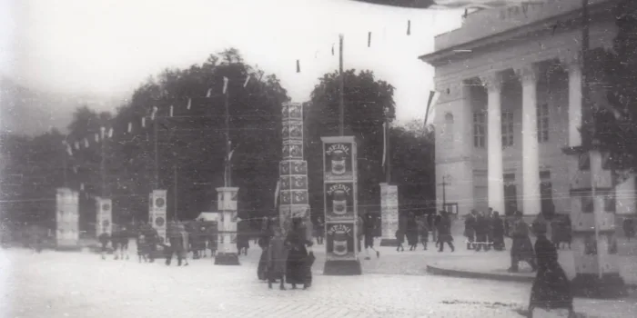 Auf diesem Foto, welches zwischen 1919 und 1922 entstand, sehen wir zwei von ihnen, in voller Montur auf ihren Pferden auf der Kärntner Straße entlang des Inn reiten. Im Hintergrund sind die Nordkette, Häuserfronten der Haller Straße und unscharf ein paar einzelne Häuser auf der Hungerburg zu sehen.