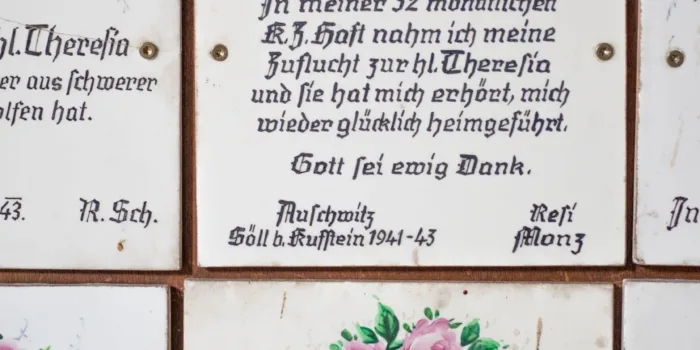 ….und dort, wo von der Straße der Weg zu den Häusern des Weilers „Scheiben“ – wo meine Tante „beim Weber“ untergekommen war – und zum Kalvarienberg, genau an der Ecke, saß ein dunkelhäutiger französischer Soldat hinter einem selbstgemaqchten Feuerchen und hielt Wache – mit Gewehr… z’kalt hat er halt g’habt…