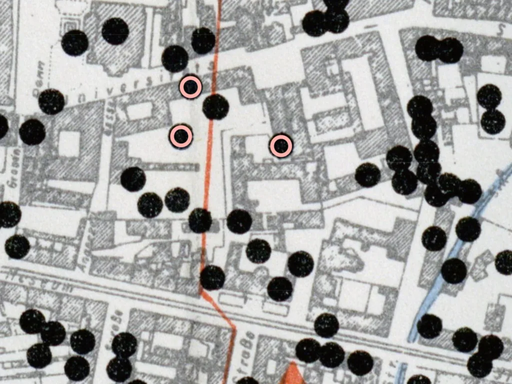 Immer wieder verblüffend, wie genau das alles in die hier wie bereits ödters interaktiv zu sehende bekannte Bombentreffer-Karte eingegangen ist.
