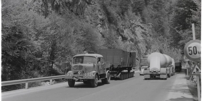 Eine ungewöhnliche Perspektive, zumal für diese kleine Serie, eröffnet diese Aufnahme aus dem August 1976. Über das Einsatzleitfahrzeug (Range Rover, Bj. 1974) blicken wir auf den ausgefahrenen Leiterpark der Margius-Drehleiter (DL-30), über den gerade zwei Feuerwehrmänner aufsteigen, während ihr Kollege bereits die Dachkannte erklommen hat. Auch wenn – zumindest auf dieser Aufnahme – gerade kein Rauch zu sehen ist, so handelt es sich diesemal doch um einen Realeinsatz (Dachstuhlbrand). Glücklicherweise stand das Gebäude gerade leer. Gemeinsam mit zwei FF-Einheiten gelang es der Berufsfeuwehr das Feuer rasch unter Kontrolle zu bringen und nach einer knappen Stunde konnte „Brand aus“ gegeben werden. Doch nun zur Rätselfrage: Können Sie uns sagen, wo sich der Einsatzort befand?