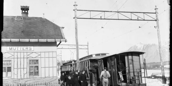 Wir sind irgendwo in einer dieser trostlos-kalten Übergangsjahreszeiten, wo gerade weder Laub noch Schnee liegt – aus Kinderperspektive eher fad zum Spazieren. Die kleine Familienszene auf der Parkbank erinnert an die eigenen Kindertage, als man mit Schniefnase und kratziger Wollmütze an Mamas Hand durch den Hofgarten rannte (oder gezerrt wurde, je nach Tagesverfassung). Spannend zu sehen ist, dass die Gartenanlagen des Hofgarten zu diesem Zeitpunkt noch fast bis ans Landestheater heranreichten, wie auch auf diversem Kartenmaterial gut zu erkennen ist (hier als Beispiel ist die Karte von Josef Redlich aus dem Jahr 1914). Ein Teil des Baumbestandes und der Brunnen rechts im Bild fielen dem Garagen- bzw. dem Bau des heute dort befindlichen Pavillon zum Opfer. Auch das kleine Vordach am Seiteneingang des Landestheaters ist heute nicht mehr vorhanden.