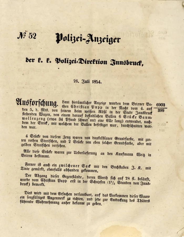 In unseren Beständen finden sich einige wenige Ausgaben des Polizei-Anzeiger der k.k. Polizeidirektion Innsbruck (Ausgaben…