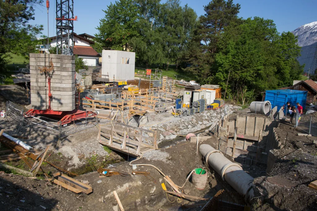Die Bauarbeiten zur Errichtung des Mischwasser-Überlauf-Beckens (MÜB)
