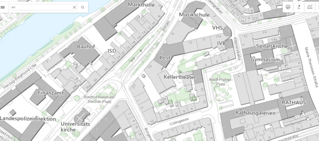 (Foto: Stadtarchiv Innsbruck, Ph-26184; Kartenausschnitt: Weboffice Stadt Innsbruck)