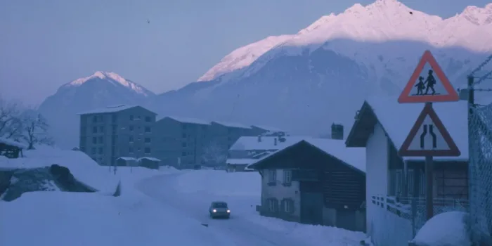 Es dürfte sich um einen 1. Mai handeln, wenn man die Schneelage auf dem Patscherkofel heranzieht, und um die 1950er Jahre, wenn man nach der Mode geht. Großteils viel zu dünn angezogen nehmen hier in der Nachmittagssonne zahlreiche junge Menschen Aufstellung, um bald durch die Stadt zu ziehen und friedliche Slogans ganz ohne heute bei solchen Veranstaltungen gelegentlich geübte Verfolgten-Attitüde, empörte Ablehnung einer zuvor imaginierten Diktatur oder Werbung für alternative Fakten zur Schau stellen zu müssen. Wahrscheinlich riefen sie auch nicht frech „Grenzen töten“ und wurden dafür von der gewaltbereiten Exekutive eingekesselt und rechtswidrig mit Knüppeln und Tränengas bedacht. Hier übte man „Völker hört die Signale“ und rief dann „Hoch! Die! Inter-natio-na-le So-li-da-ri-tät“. Schöne Zeiten waren das. Hoffentlich haben sich die TeilnehmerInnen nicht verkühlt und haben sich nicht allzu sehr geärgert, als später an dieser Stelle ein großer sozialistischer Einkaufstempel errichtet wurde… wer es zuerst unten hereinschreibt, wie dieser Sportplatz genannt wurde, bekommt einen Forum-Gutschein!