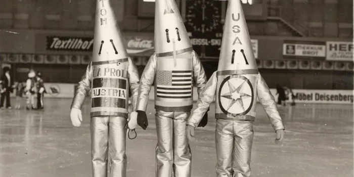 Das Bild muss zwischen den Jahren 1928 (Eröffnung Nordkettenbahn) und 1938 (Einführung der Reichsmark) stammen. Dem Kiosk nach zu urteilen eher zum Ende hin. Ob er sich für seinen Säbel wohl einen Stocknagel kaufte?